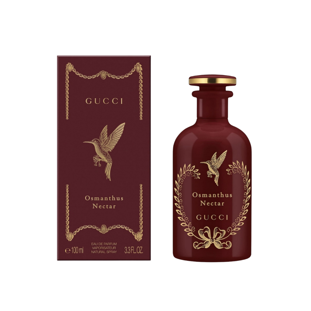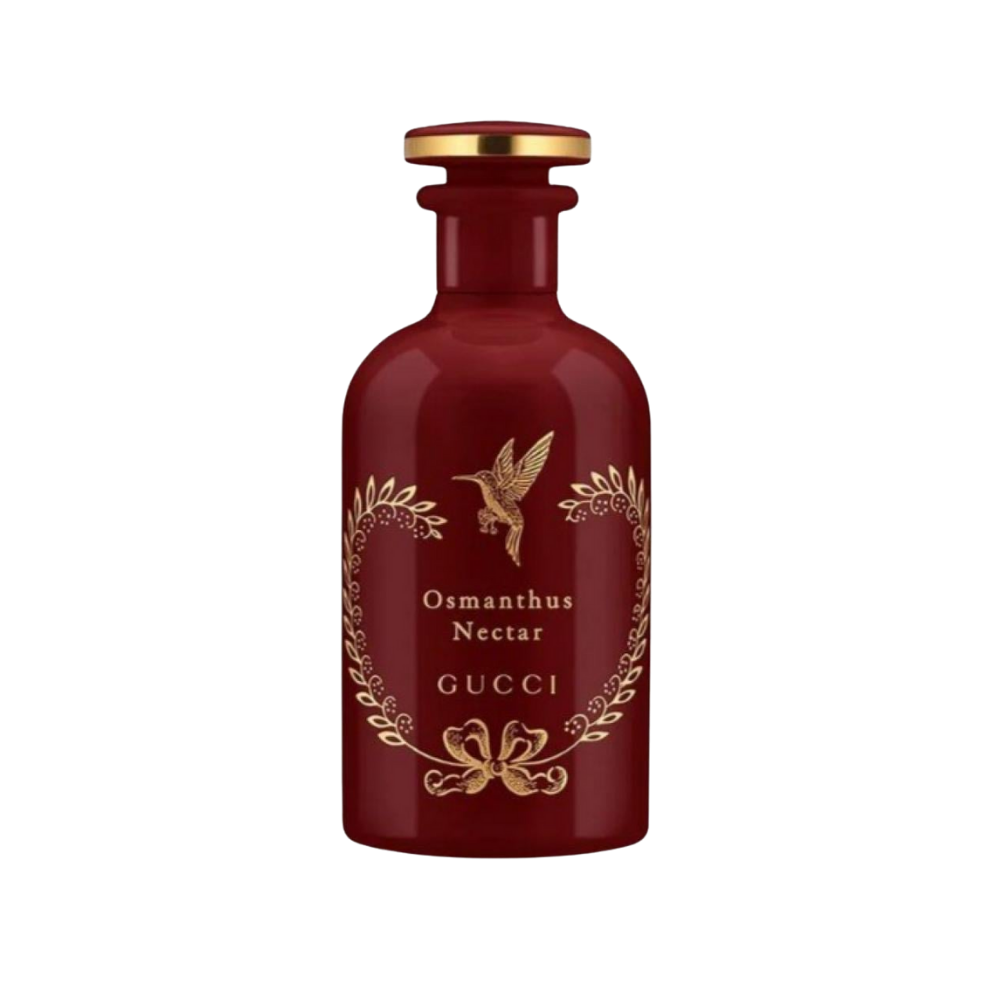الزجاجة زجاجة حمراء تعكس التقنيات المُبتكرة التي تم استخدامها لإعادة ابتكار الرائحة الزهرية للأوسمانثوس. توجد على الزجاجة صورة لطائر الطنان الذي يرمز إلى الروح السريعة والحرة التي لا تُقهر لصانع العطور المحترف.